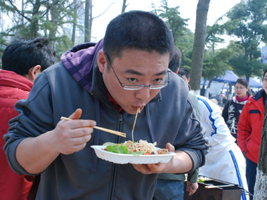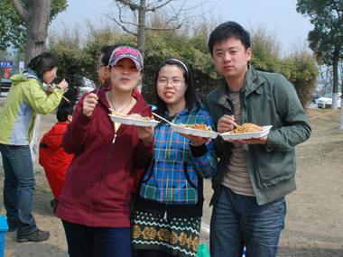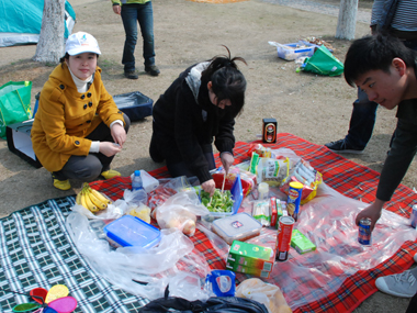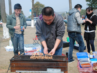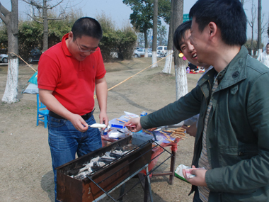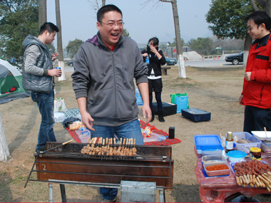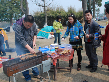 9:30分左右,一行20余人分乘兩輛車到達目的地太湖濕地公園;勘地、搭帳篷、支燒烤爐子,20分鐘內(nèi)全部搞定,勤勞的女同志串肉串等,向咱們既漂亮又賢惠的女同胞們致敬;男同志則為保持戰(zhàn)斗力,在帳篷內(nèi)休整——打牌;放圖與各位一同分享。